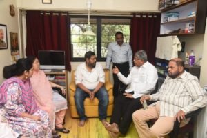 पुणे : भाजपचे खासदार आणि ज्येष्ठ नेते गिरीश बापट यांचे नुकतेच निधन झाले. पुण्याची ताकद गिरीश बापट अशी आपली ओळख निर्माण करणारे बापट यांच्या जाण्याने राजकीय वर्तुळात एक मोठी पोकळी निर्माण झाली आहे. आज महाराष्ट्राचे उच्च व तंत्र शिक्षण मंत्री तथा पुण्याचे पालकमंत्री चंद्रकांत पाटील यांनी गिरीश बापट यांच्या निवासस्थानी जाऊन त्यांच्या कुटुंबीयांची सांत्वनपर भेट घेतली. यावेळी त्यांच्या समवेत भाजपचे शहरातील प्रमुख पदाधिकारी, नगरसेवक उपस्थित होते.