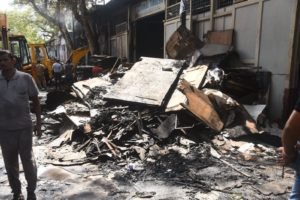 पुणे : पुण्यातील भवानी पेठ परिसरातील टिंबर मार्केटमध्ये काल भीषण आग लागून, प्रचंड नुकसान झाले. पुण्याचे पालकमंत्री चंद्रकांत पाटील यांनी आज टिंबर मार्केट येथे जाऊन घटनास्थळाची पाहाणी केली. या घटनेत काही दुकानांसोबतच काही घरांचेही नुकसान झाले आहे. पाटील यांनी व्यापारी आणि स्थानिक नागरिकांशी संवाद साधून त्यांना धीर दिला. यासोबतच नुकसनाग्रस्त झालेली तीन घरे लोकसहभागातून उभी करुन देऊ असे आश्वस्त हि केले.
