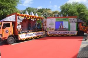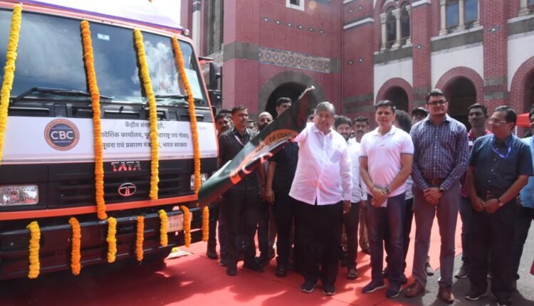 पुणे – संतश्रेष्ठ श्री ज्ञानेश्वर महाराज व जगद्गुरू श्री तुकाराम महाराज पालखी सोहळ्याच्या निमित्ताने केंद्र सरकाच्या माहिती आणि प्रसारण मंत्रालयांतर्गत पुणे येथील केंद्रीय संचार ब्युरो प्रादेशिक कार्यालयच्यावतीने केंद्र सरकाचे ९ वर्षातील कार्य व प्रमुख योजनांची माहिती देण्यासाठी तयार करण्यात आलेल्या फिरत्या बहुमाध्यम वाहन प्रदर्शनाचे उद्घाटन राज्याचे उच्च व तंत्रशिक्षण मंत्री तथा जिल्ह्याचे पालकमंत्री चंद्रकांतदादा पाटील यांच्या हस्ते करण्यात आले .