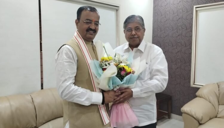 चंद्रकांत पाटील यांच्याकडून उत्तर प्रदेशचे उपमुख्यमंत्री केशवप्रसाद मौर्य यांचे पुण्यात स्वागत, कोथरूडमध्ये लाभार्थी संमेलनास करणार संबोधित