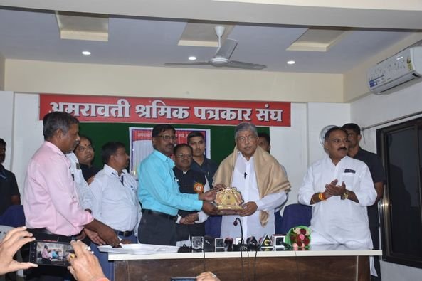 श्रमिक पत्रकार संघाचे अध्यक्ष गोपाल हरणे यांनी पालकमंत्री श्री. पाटील यांना शाल, पुष्पगुच्छ व सन्मानचिन्ह देऊन सन्मानित केले. यावेळी खासदार डॉ. अनिल बोंडे, आमदार प्रवीण पोटे पाटील, मनपा स्थायी समितीचे माजी सभापती तुषार भारतीय, पत्रकार संघाचे मार्गदर्शक विलास मराठे, उपाध्यक्ष अमोल इंगोले, कोषाध्यक्ष तथा संत गाडगेबाबा अमरावती विद्यापीठाचे सिनेट सदस्य गिरीश शेरेकर, सचिव रवींद्र लाखोडे, कार्यकारिणी सदस्य कृष्णा लोखंडे, प्रवीण कपिले आदी सर्व पदाधिकारी उपस्थित होते.