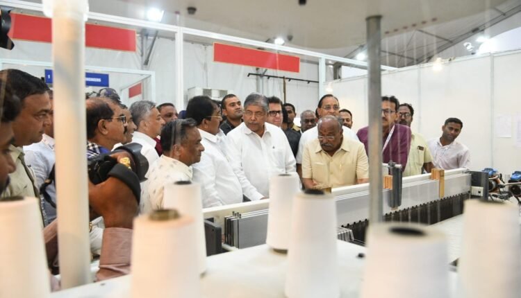 इचलकरंजी : वस्त्रनगरी इचलकरंजी येथे रोटरी क्लब ऑफ इचलकरंजी सेंट्रल आणि डी.के.टी.ई. टेक्स्टाईल इन्स्टिट्यूटच्या संयुक्त विद्यमाने आयोजित टेक्सपोजर या टेक्स्टाईल प्रदर्शनाला उच्च व तंत्र शिक्षण मंत्री तथा वस्त्रोद्योग मंत्री चंद्रकांत पाटील यांनी भेट दिली.