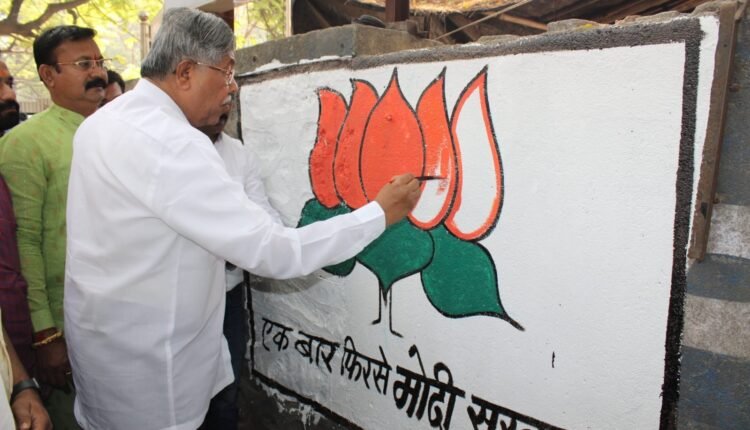 लोकसभा निवडणुकीच्या पार्श्वभूमीवर अधिकाधिक लोकांपर्यंत पोहोचण्यासाठी भाजपाच्या माध्यमातून राबविल्या जाणाऱ्या ‘वॉल पेंटिंग’ अभियानात चंद्रकांत पाटील यांचा सहभाग