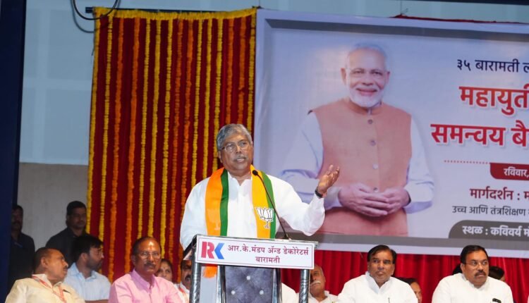 आगामी लोकसभा निवडणुकीच्या अनुषंगाने बारामती लोकसभा मतदारसंघाच्या प्रवासादरम्यान भारतीय जनता पक्षाच्या संपर्क कार्यालयास चंद्रकांत पाटील यांनी सदिच्छा भेट दिली. तसेच बारामती शहरातील मोरोपंत सभागृह येथे महायुतीच्या सर्व घटक पक्षांची समन्वय बैठक यादरम्यान संपन्न झाली. देशाचे लोकप्रिय पंतप्रधान नरेंद्र मोदी यांना तिसऱ्यांदा पंतप्रधान करण्यासाठी महायुतीच्या उमेदवारांना प्रचंड मतांनी विजयी करण्याचा संकल्प या बैठकीत करण्यात आला. यावेळी महायुतीतील सर्व घटक पक्षांचे प्रमुख पदाधिकारी आणि कार्यकर्ते मोठ्या संख्येने उपस्थित होते.