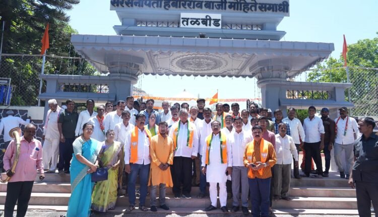 सातारा : आपल्या पराक्रमाने शिवकाळ व शंभूकाळ गाजवणारे स्वराज्याचे मुख्य सेनापती हंसाजी बाजी अर्थात हंबीरराव बाजी मोहिते यांच्या सातारा येथील तळबीड येथे असणाऱ्या समाधीस्थळाला उच्च व तंत्र शिक्षण मंत्री चंद्रकांत पाटील यांनी भेट देऊन समाधीचे दर्शन घेतले.