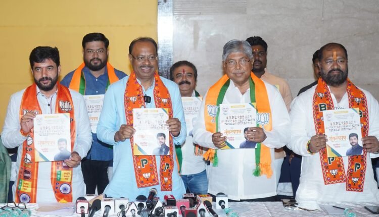 पुणे : महायुतीचे उमेदवार मुरलीधर मोहोळ यांचे विकसीत, सुरक्षित आणि पर्यावरणपुरक असे संकल्पपत्र भाजपाचे प्रदेशाध्यक्ष चंद्रशेखर बावनकुळेजी यांच्या हस्ते प्रकाशित करण्यात आले. यावेळी उच्च व तंत्र शिक्षण मंत्री चंद्रकांत पाटील यांची प्रमुख उपस्थिती होती. भारतीय जनता पक्षाचं व्हिजन मांडणारं हे संकल्पपत्र आहे. तसेच पुणेकरांनी सुचविलेल्या सूचनांचा अंतर्भाव असलेलं हे संकल्पपत्र आहे.