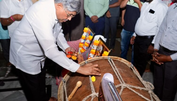 पुणे : पुणे ढोल-ताशा पथक महासंघाच्या वतीने शनिवारी कसबा गणपती मंदिरात ढोल-ताशा पूजनाचे आयोजन करण्यात आले होते. या कार्यक्रमात उच्च व तंत्र शिक्षण मंत्री चंद्रकांत पाटील यांनी सहभागी होऊन सर्वांना शुभेच्छा दिल्या.
