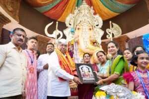 केंद्रीय राज्यमंत्री मुरलीधर मोहोळ यांच्या कोथरूड मधील श्रीसाई मित्र मंडळाच्या बाप्पांचे दर्शन घेऊन चंद्रकांत पाटील यांनी मनोभावे पूजा केली. सर्वांच्या सुख-समृद्धी व कल्याणासाठी गणराया चरणी प्रार्थना केली.