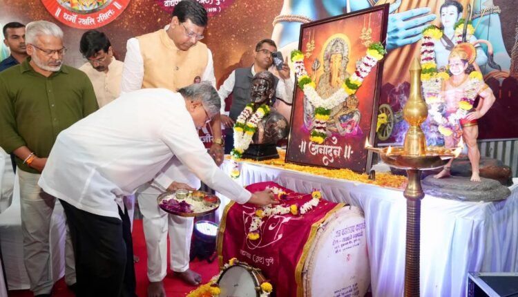 उच्च व तंत्र शिक्षण मंत्री चंद्रकांत पाटील यांच्या हस्ते पुण्यातील दत्तवाडी येथील रुद्रांश ढोल ताशा पथकाच्या वाद्यांची पूजा संपन्न