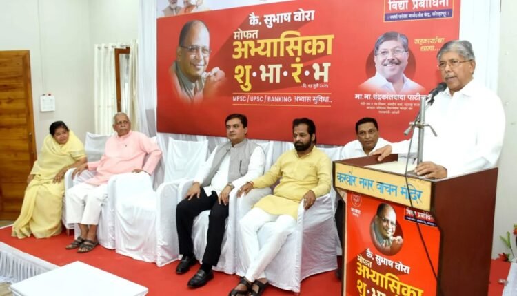 कोल्हापूर : राष्ट्रीय स्वयंसेवक संघ, भारतीय जनसंघ व भारतीय जनता पार्टी या तीनही आघाड्यांवर प्रभावी सामाजिक आणि राजकीय कार्य केलेले, माजी नगरसेवक स्वर्गीय सुभाष वोरा यांच्या स्मृतिप्रित्यर्थ मोफत स्पर्धा परीक्षा अभ्यासिकेचा उदघाटन समारंभ उच्च व तंत्र शिक्षण मंत्री चंद्रकांत पाटील यांच्या प्रमुख उपस्थितीत संपन्न झाला. या अभ्यासिकेचे उद्घाटन रविवारी कोल्हापूरमधील बिंदू चौक येथे असलेल्या जुन्या भाजपा कार्यालयाच्या इमारतीत करण्यात आले.