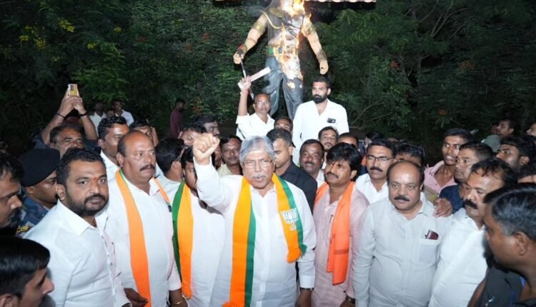 सांगली : सांगली जिल्ह्यात भारतीय जनता पक्षाच्या वतीने व जिल्ह्याचे पालकमंत्री चंद्रकांत पाटील यांच्या प्रमुख उपस्थितीत आयोजित इशारा सभा संपन्न झाली. ही सभाच नव्हे तर महाराष्ट्राच्या राजकीय संस्कृतीचे रक्षण करण्याचा निर्धार होता. महाराष्ट्राची राजकीय संस्कृती बिघडवणाऱ्यांना खबरदारीचा इशारा देण्यासाठी हि ‘इशारा सभा’ आयोजित करण्यात आली. या सभेनंतर अन्याय, खोटेपणा आणि समाज विघातक प्रवृत्तींचे प्रतीक असलेल्या रावणाचे दहन करण्यात आले. यामध्ये उपस्थित कार्यकर्त्यांनी मोठ्या उत्साहाने सहभाग नोंदवला. सत्य, न्याय आणि संस्कृतीच्या रक्षणासाठीचा हा निर्धारच महाराष्ट्राच्या भविष्याला नवी दिशा देईल, असा विश्वास असल्याचे यावेळी पाटील यांनी म्हटले.