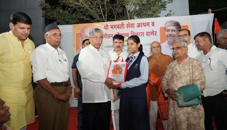 पुणे : श्री भगवती सेवा आश्रम व जीवन कौशल्य विकास बाणेर संस्थेच्या पुढाकारातून गणेशोत्सव काळात २० वस्त्यांमध्ये पर्यावरणपूरक गणेश मूर्ती बनविण्याचा उपक्रम राबविण्यात आला होता. या उपक्रमात सहभागी होऊन पर्यावरणपूरक गणेश मूर्ती साकार करणाऱ्या मुला-मुलींचा सत्कार समारंभ दसऱ्याच्या मुहूर्तावर संपन्न झाला. उच्च व तंत्र शिक्षण मंत्री तथा कोथरूड मतदारसंघाचे आमदार चंद्रकांत पाटील यांच्या प्रमुख उपस्थितीत हा सत्कार सोहळा उत्साहात पार पडला.