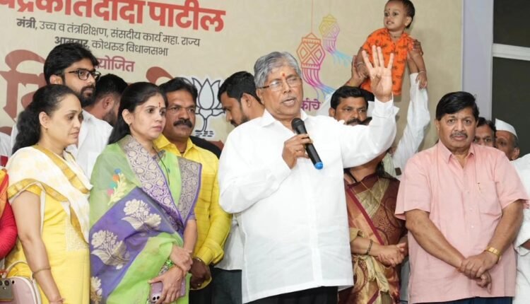पुणे : दिवाळीचा उत्साह आणि आनंद साजरा करण्यासाठी सोमवारी उच्च व तंत्र शिक्षण मंत्री तथा कोथरूड मतदारसंघाचे आमदार चंद्रकांत पाटील यांनी आपल्या कोथरुड मतदारसंघातील केळेवाडी परिसरात नागरिकांसाठी सस्नेह मेळाव्याचे आयोजन केले होते.