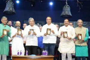 पुणे : भारतीय स्वातंत्र्यलढ्याला चेतना, चैतन्य आणि ऊर्जा देणाऱ्या ‘वंदे मातरम्’ या राष्ट्रीय गीताला यंदा १५० वर्षे पूर्ण होत आहेत. या ऐतिहासिक पर्वानिमित्त सांस्कृतिक विभाग, पुणे पुस्तक महोत्सव, वंदे मातरम् सार्धशती जयंती समारोह समिती आणि जन्मदा प्रतिष्ठान यांच्या संयुक्त विद्यमाने बालगंधर्व रंगमंदिर, पुणे येथे ‘वंदे मातरम् उत्सव’ साजरा करण्यात आला. या प्रसंगी ‘वंदे मातरम्’ विषयाचे अभ्यासक श्री. मिलिंद सबनीस लिखित ‘ध्यास वंदे मातरम्चा’ या पुस्तकाचे प्रकाशन उच्च व तंत्र शिक्षण मंत्री चंद्रकांत पाटील आणि राज्याचे सांस्कृतिक कार्यमंत्री आशिष शेलार यांच्या हस्ते संपन्न झाले.
