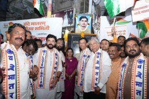 या प्रसंगी संपूर्ण परिसर तिरंगामय होऊन “वंदे मातरम्” च्या जयघोषात वातावरण बदल देशभक्तीने भारून गेले होते. “वंदे मातरम्” हा केवळ एक जयघोष नाही, तर भारतीय स्वातंत्र्यलढ्याचा आत्मा आहे. राष्ट्रप्रेम, त्याग, निष्ठा आणि अभिमान यांचा संगम असलेला हा घोष आजही प्रत्येक भारतीयाच्या शिरात उर्जा निर्माण करतो. लहानांपासून ते ज्येष्ठांपर्यंत समाजातील सर्व घटक सर्वांनी एकदिलाने सहभाग नोंदवला. पंतप्रधान नरेंद्रजी मोदी यांच्या संकल्पनेतून ही यात्रा साकार झाली. ही यात्रा केवळ एक कार्यक्रमच नव्हती, तर ती होती संस्कृतीचा उत्सव, राष्ट्रभक्तीची जाणीव आणि भारतमातेप्रती कृतज्ञतेचा संकल्प होता.