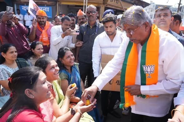 उरुण-ईश्वरपुर नगरपरिषद निवडणुकीत नगराध्यक्ष पदासाठी महायुतीचे उमेदवार विश्वनाथबापू डांगे यांनी प्रचंड उत्साह आणि जनसागराच्या उपस्थितीत मंत्री चंद्रकांत पाटील यांच्या प्रमुख उपस्थितीत आपला उमेदवारी अर्ज दाखल केला. यावेळी बोलताना पाटील यांनी बिहार विधानसभा निवडणुकीत भाजपा-एनडीएने मिळवलेला ऐतिहासिक विजयाबाबत आनंद व्यक्त केला. ते म्हणाले बिहार मध्ये जो निकाल लागला तो वोट चोरी नाही तर लोकांचं मोठ्या प्रमाणात मोदीजींना जनसमर्थन आहे. मोदीजींनी २०१४ मध्ये पंतप्रधान झाल्यानंतर या देशाचं संपूर्ण चित्र बदललं. सर्वसामान्य माणसाच्या आयुष्यामध्ये सुख- समाधान आणलं, सुरक्षा आणली. मोदी पंतप्रधान झाले तेव्हा देश ११ व्या क्रमांकावर होता आता चौथ्या क्रमांकावर आहे, आणि २०३० मध्ये तो तिसऱ्या क्रमांकावर येईल, २०४७ पर्यंत क्रमांक एक वर येणार आहे, असे पाटील यांनी म्हटले.