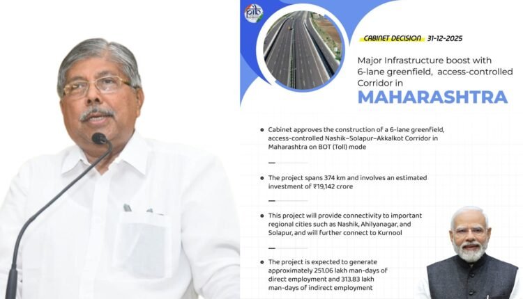 महाराष्ट्रासाठी मोठी बातमी! १९,१४२ कोटींच्या नाशिक–सोलापूर–अक्कलकोट कॉरिडॉरला केंद्राची मंजुरी; मंत्री चंद्रकांत पाटील यांनी मानले पंतप्रधान मोदींचे आभार