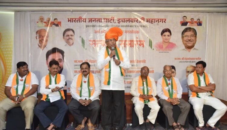 कोल्हापूर : इचलकरंजी महानगरपालिकेच्या पहिल्याच निवडणुकीत भाजपा महायुतीला मिळालेल्या ऐतिहासिक यशानिमित्त भारतीय जनता पार्टीच्या वतीने नूतन नगरसेवकांचा भव्य सत्कार सोहळा सोमवारी उत्साहात पार पडला. या प्रसंगी उच्च व तंत्र शिक्षण मंत्री चंद्रकांत पाटील यांची प्रमुख उपस्थिती होती.