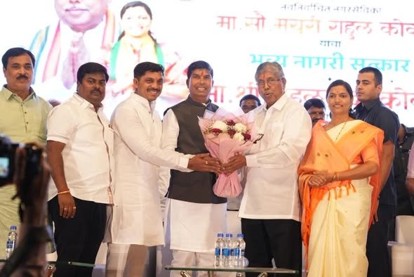 पुणे : कोथरुड मतदारसंघातील प्रभाग क्रमांक ९ येथील भाजपा कार्यकर्ते राहुल कोकाटे यांच्या वाढदिवसानिमित्त आयोजित अभिष्टचिंतन सोहळा तसेच नवनिर्वाचित नगरसेविका मयुरी कोकाटे आणि रोहिणी चिमटे यांचा सत्कार सोहळा मोठ्या उत्साहात संपन्न झाला. यावेळी उच्च व तंत्र शिक्षण मंत्री तथा कोथरूड मतदारसंघाचे आमदार चंद्रकांत पाटील यांची प्रमुख उपस्थिती होती.