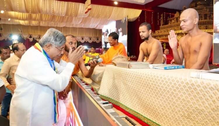 नांद्रेत ‘पंचकल्याणक’ महोत्सवाचा मंगलमय सोहळा; पालकमंत्री चंद्रकांत पाटील यांनी घेतले जैन मुनींचे आशीर्वाद