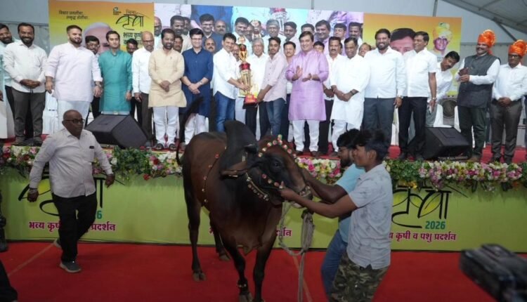 कोल्हापूर : पश्चिम महाराष्ट्रातील सर्वात मोठे भव्य आणि दिव्य सलग चार दिवस रेकॉर्ड ब्रेक गर्दीचा उच्चांक ठरलेल्या भिमा कृषी व पशु प्रदर्शनाचा सांगता समारंभ राज्याचे उच्च व तंत्र शिक्षण मंत्री चंद्रकांत पाटील, कोल्हापूर जिल्ह्याचे पालकमंत्री मा. प्रकाश आबिटकर साहेब यांच्या प्रमुख उपस्थितीत संपन्न झाला.