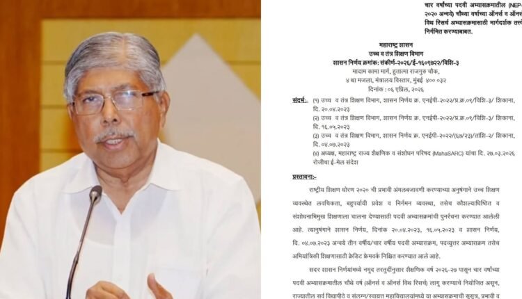 या निर्णयामुळे आपल्या विद्यार्थ्यांना संशोधनाभिमुख आणि कौशल्याधिष्ठित शिक्षणाची दारे खुली होतील. सर्व सार्वजनिक विद्यापीठे आणि स्वायत्त महाविद्यालयांमध्ये या अभ्यासक्रमाची एकसमान अंमलबजावणी व्हावी, यासाठी सविस्तर मार्गदर्शक तत्त्वेही (Guidelines) जारी करण्यात आली आहेत.