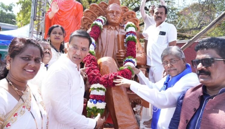 पुणे : भारतीय संविधानाचे शिल्पकार, भारतरत्न डॉ. बाबासाहेब आंबेडकर यांच्या १३५ व्या जयंतीनिमित्त उच्च व तंत्र शिक्षण मंत्री चंद्रकांत पाटील यांनी आज पुण्यातील विविध कार्यक्रमांत सहभागी होऊन महामानवास विनम्र अभिवादन केले. रेल्वे स्टेशन येथील स्मारकास भेट देऊन पाटील यांनी बुद्ध वंदना घेतली आणि तथागतांचे स्मरण केले.